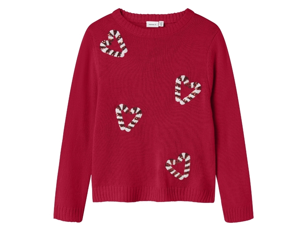 Mere information om Name It striktrøje jester red med paliet hjerter