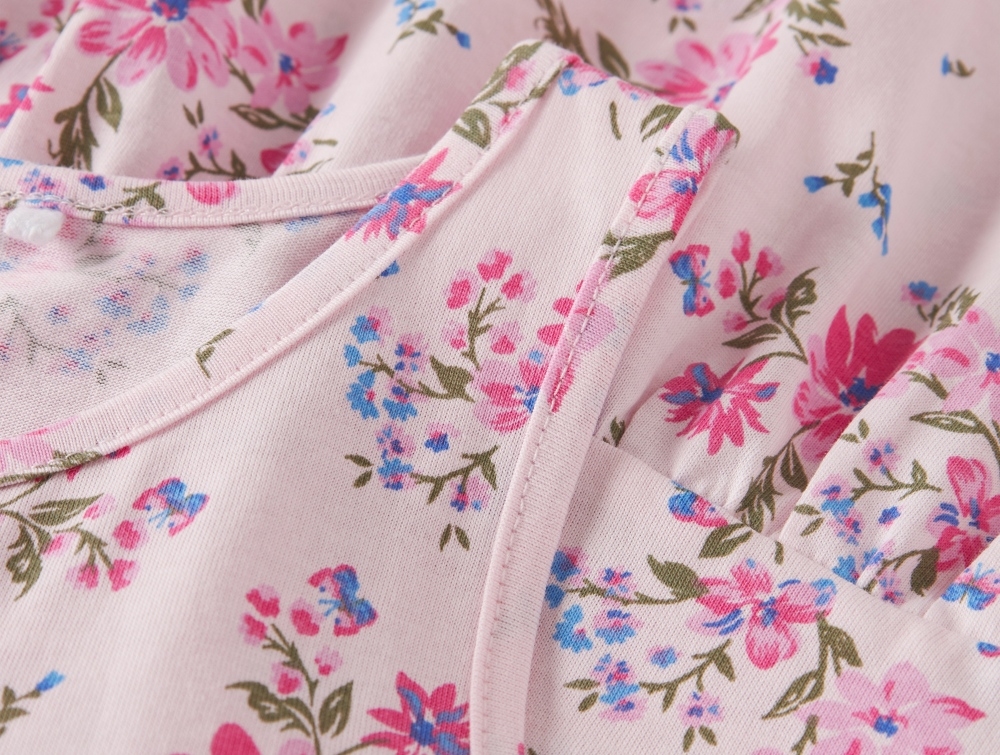 Denne ærmeløse kjole er fremstillet i 100% bomuld, som føles let og blød mod huden. Printet med små blomster dækker hele kjolen og skaber et sommerligt og levende udtryk.