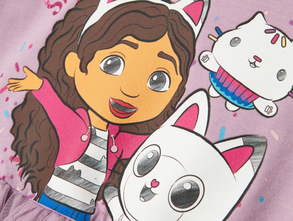 En kær style, der er perfekt til små fans af Gabby's Dukkehus – en populær Netflix-serie for førskolebørn, hvor Gabby og hendes magiske katteører fører børn gennem små verdener fyldt med farver, leg og sjove karakterer.