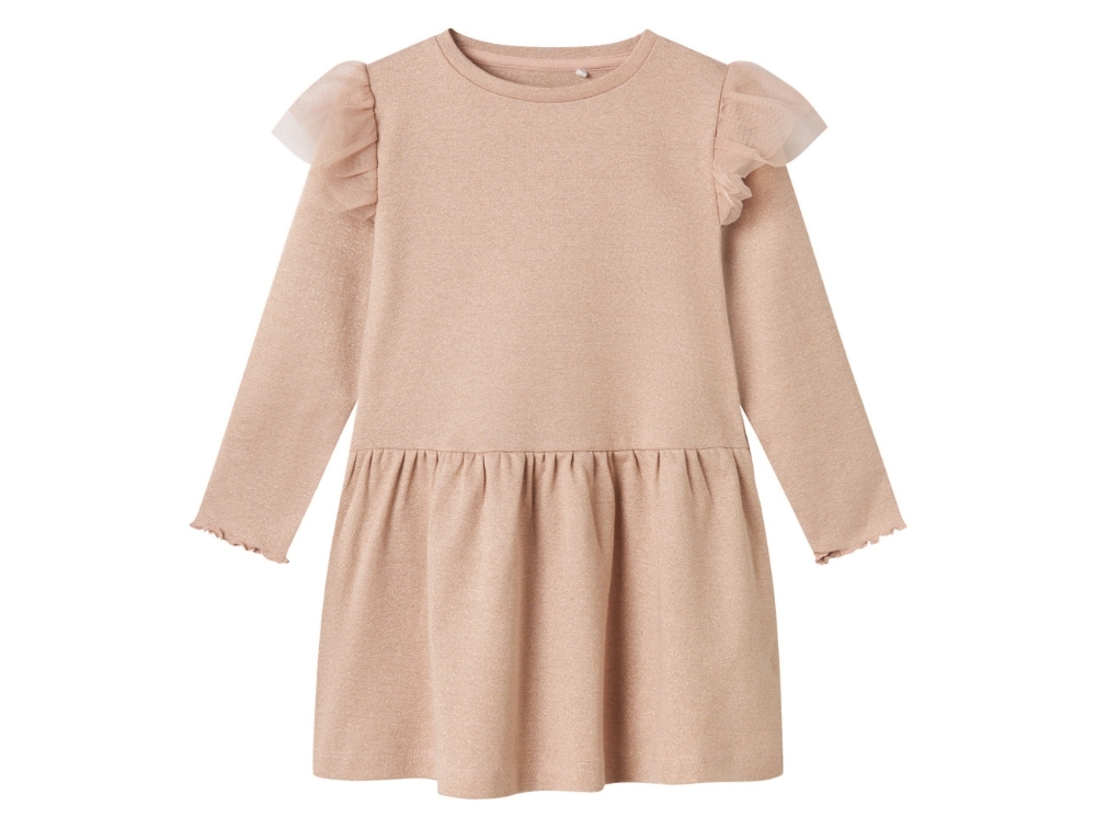 Name It kjole i lyserød nuance med glimmer og tylvolant på skuldreneName It kjole i lyserød nuance med glimmer og tylvolant på skuldrene