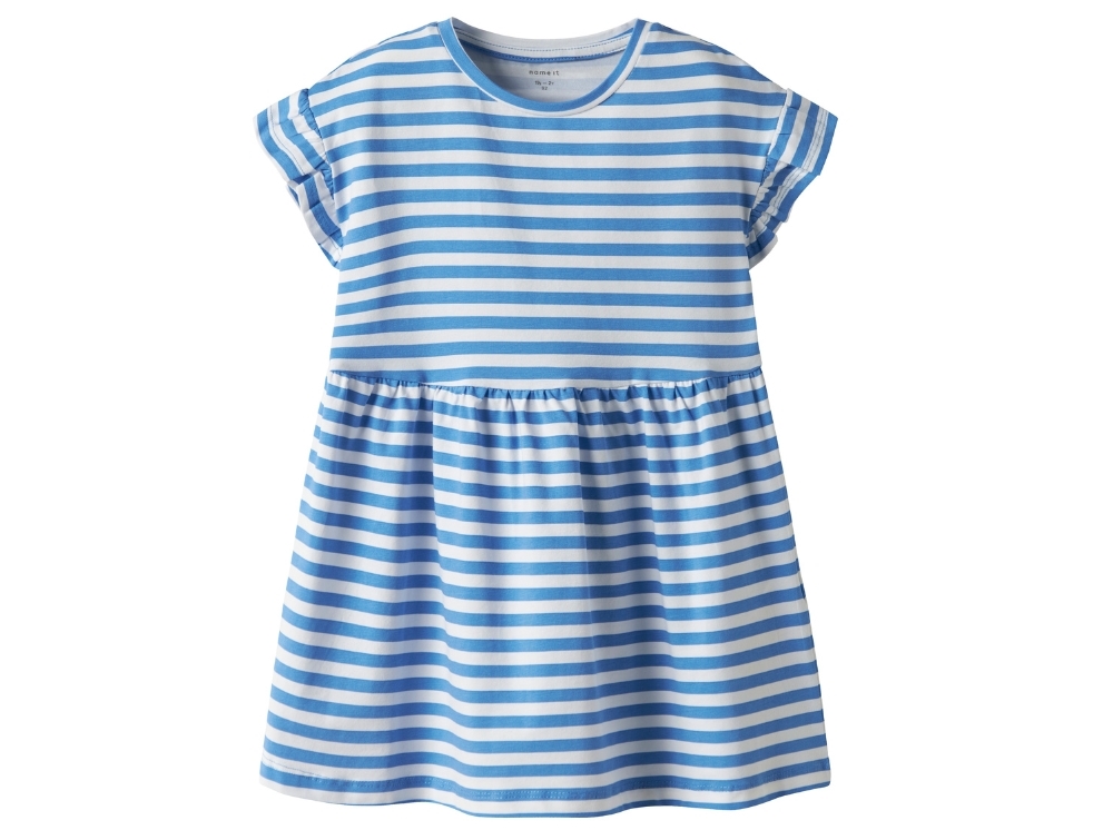 Name It kjole i blå-hvide striber med flæser