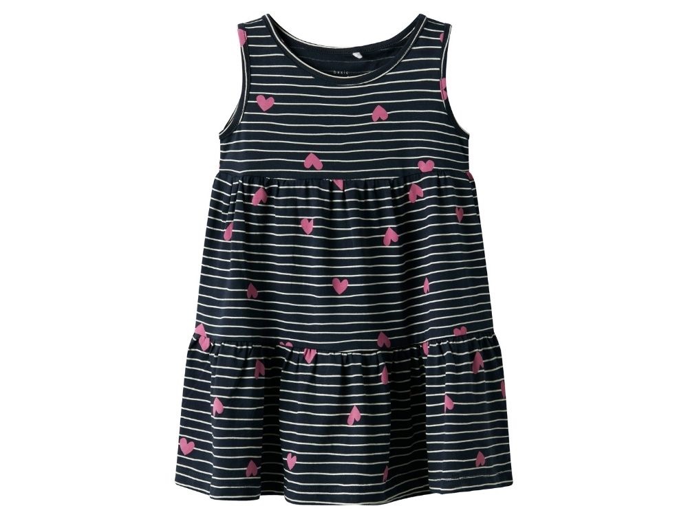 Name It kjole i mørkeblå dark sapphire med hjerteprint 13228172Mørkeblå Name It kjole med hvide striber og pink hjerteprint 13228172 dark sapphire whales