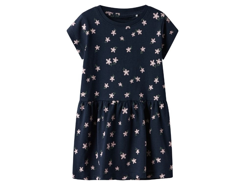 Kjole i farven mørkeblå (navy blazer) med blomsterprint fra Name It.