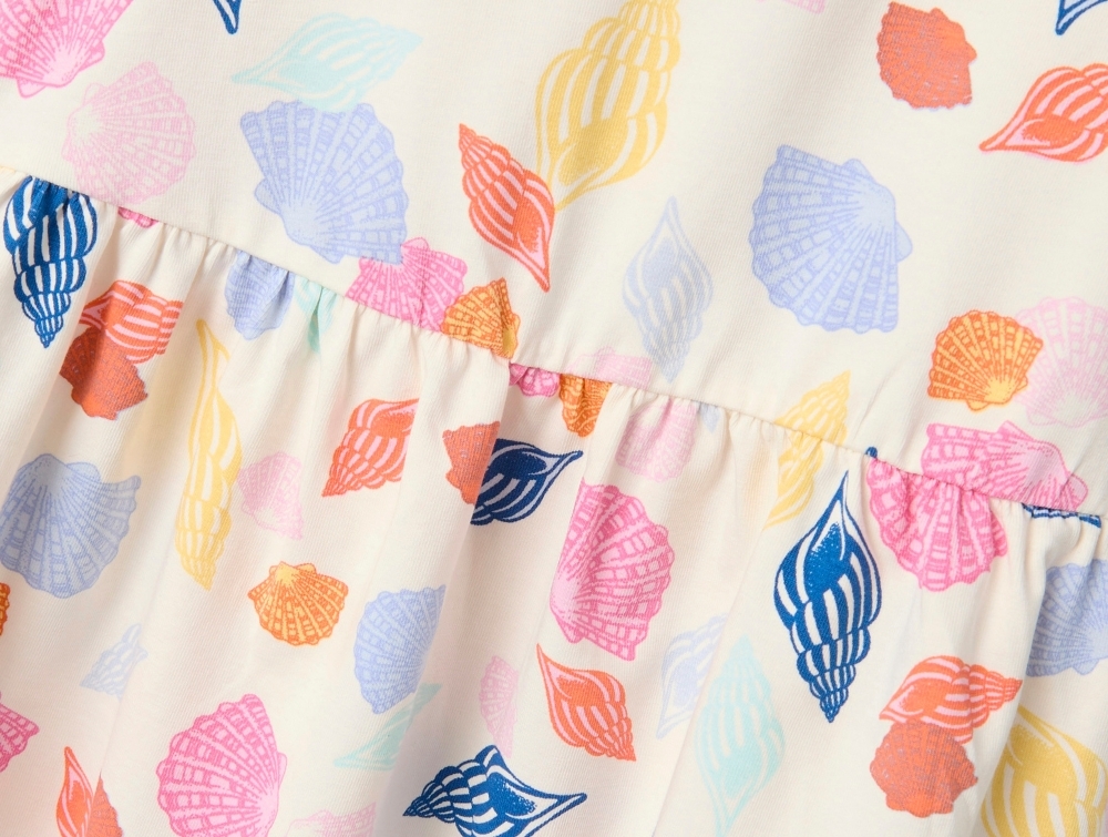 Name It kjole sea salt med flæser og muslingeskal-printDetalje af Name It kjole sea salt med flæser og muslingeskal-print