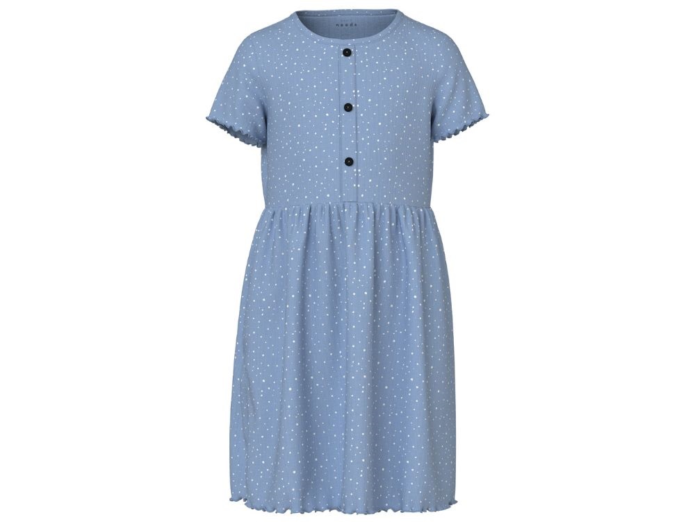 Den lette og bløde kjole i rib giver et sommerligt udtryk. Designet har korte ærmer, en rund halsudskæring og en behagelig pasform, der giver god bevægelsesfrihed.