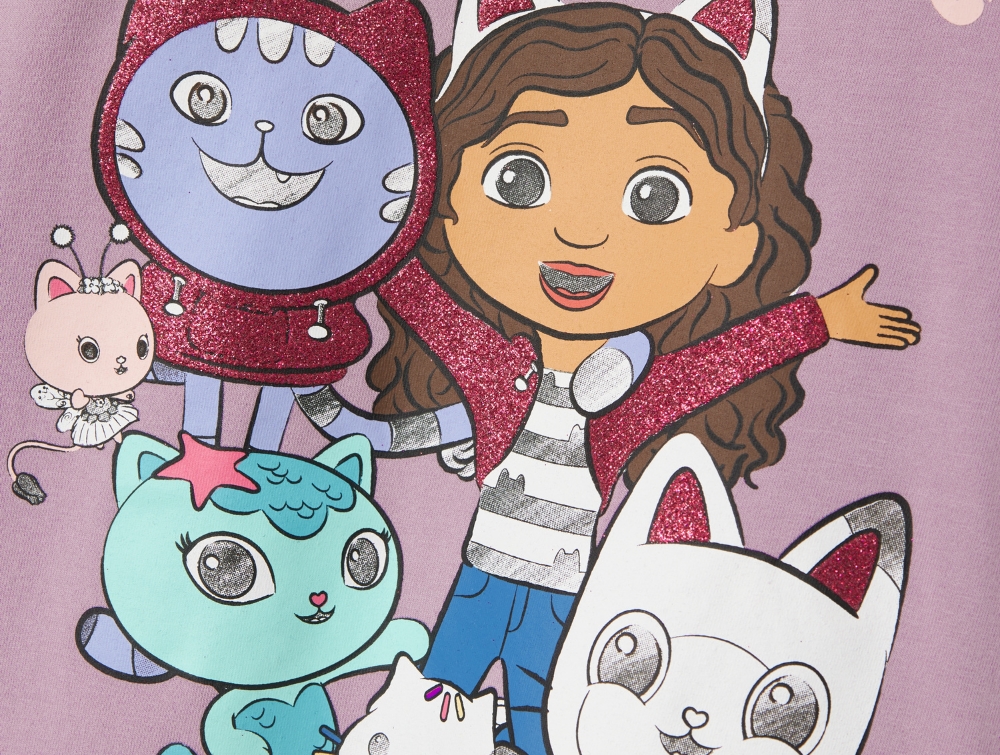 Name It natkjole i farven lavender mist med print fra Gabby's Dollhouse.