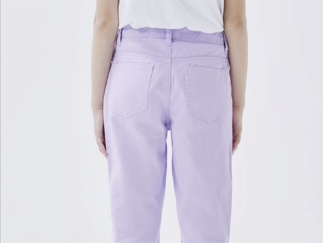 Cool jeans i mom fit i farven lavendula fra Name It.