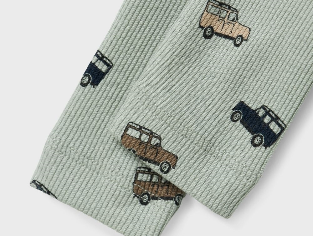 Leggings i lys støvet grøn (aqua gray) med bilprint fra Name It.