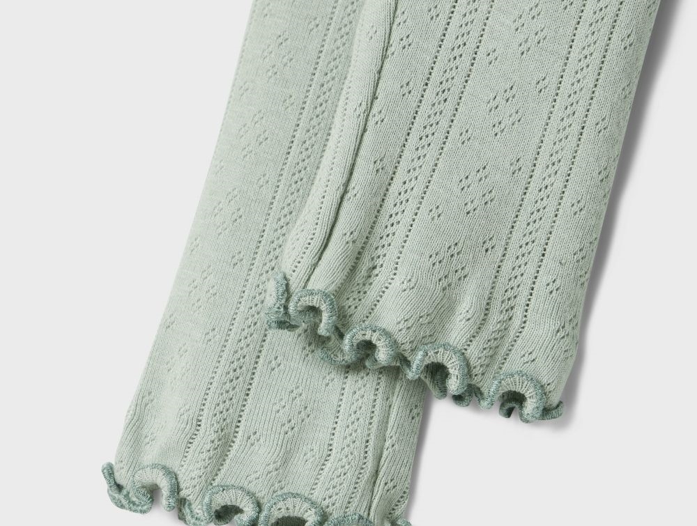 Leggings i aqua gray med pointellemønster og bølgekant