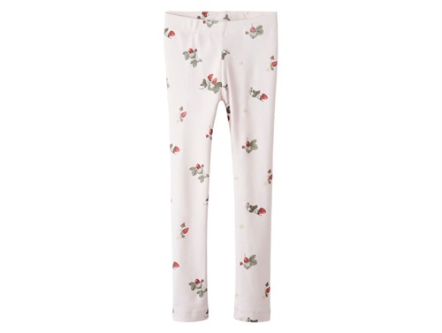 Leggings i lyserød (ballerina) fra Name It med et fint print af frugter eller bær over hele stoffet.
