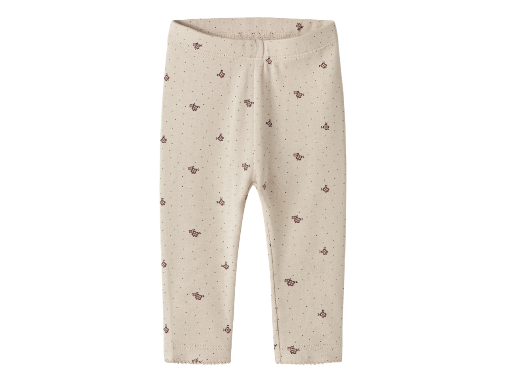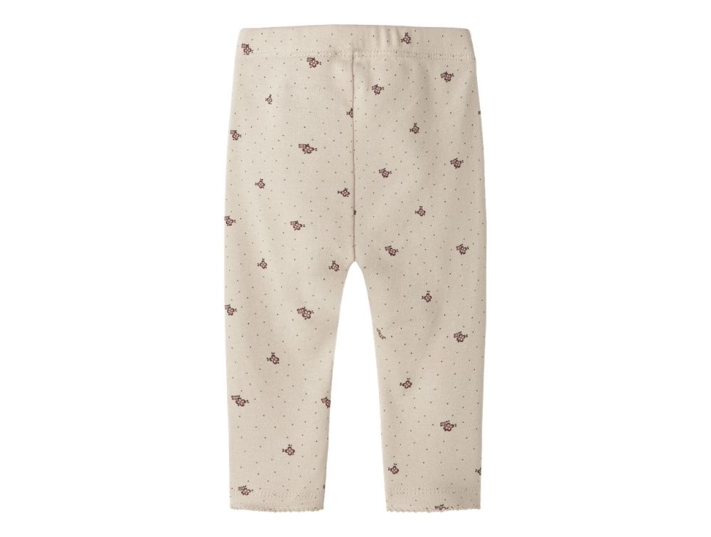 Leggings i råhvid nuance (Almond Milk) fra Name It med små blomsterprint og ribstruktur.