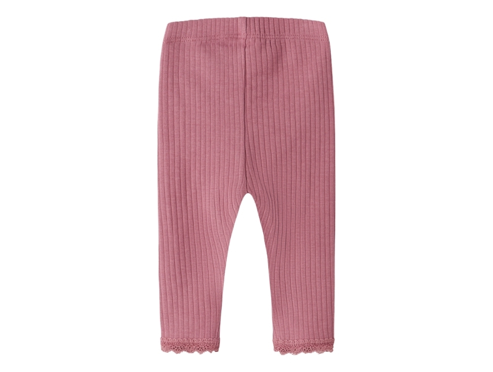 Name It leggings i rosa nuance med ribstruktur forfraBaby iklædt Name It leggings i rosa nuance med rib og blondekantName It leggings i rosa nuance med blondekant ved beneneName It leggings i rosa nuance med ribstruktur bagfra