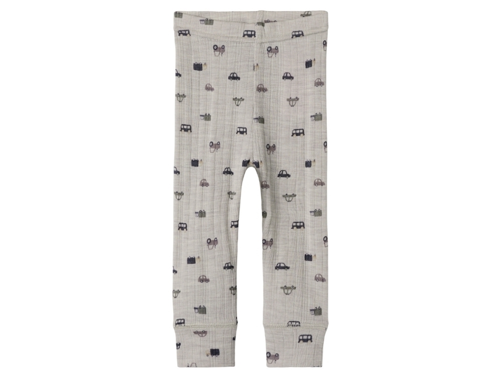 Name It leggings i lys grå nuance med bilprint i merinould