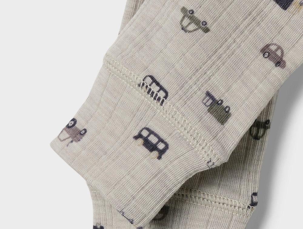 Name It leggings i nacreous cloud merinould med bilprint set forfraName It leggings i nacreous cloud merinould med bilprint detalje af printName It leggings i nacreous cloud merinould med bilprint set bagfra