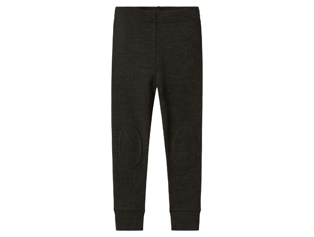Name It leggings i black sort nuance i merinould med ribmønster set forfra