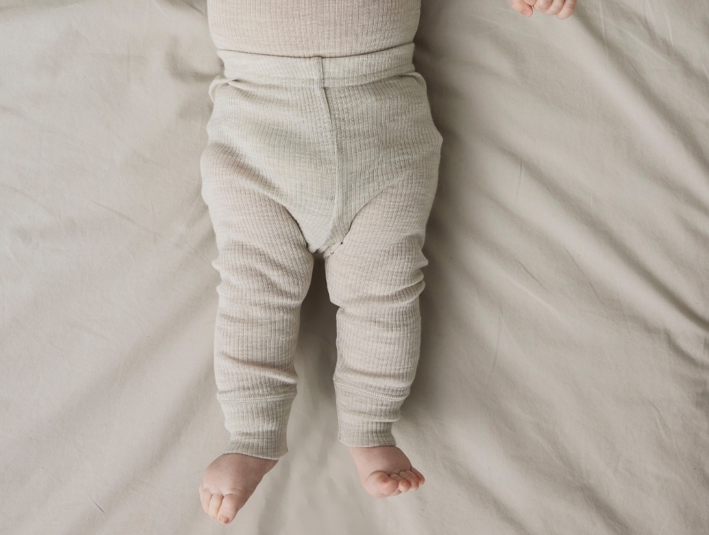 Merinoulden sikrer naturlig temperaturregulering, så barnet holdes varmt i kulden og køligt på mildere dage. Modellen har slank pasform og elastik i taljen, hvilket giver en behagelig komfort.