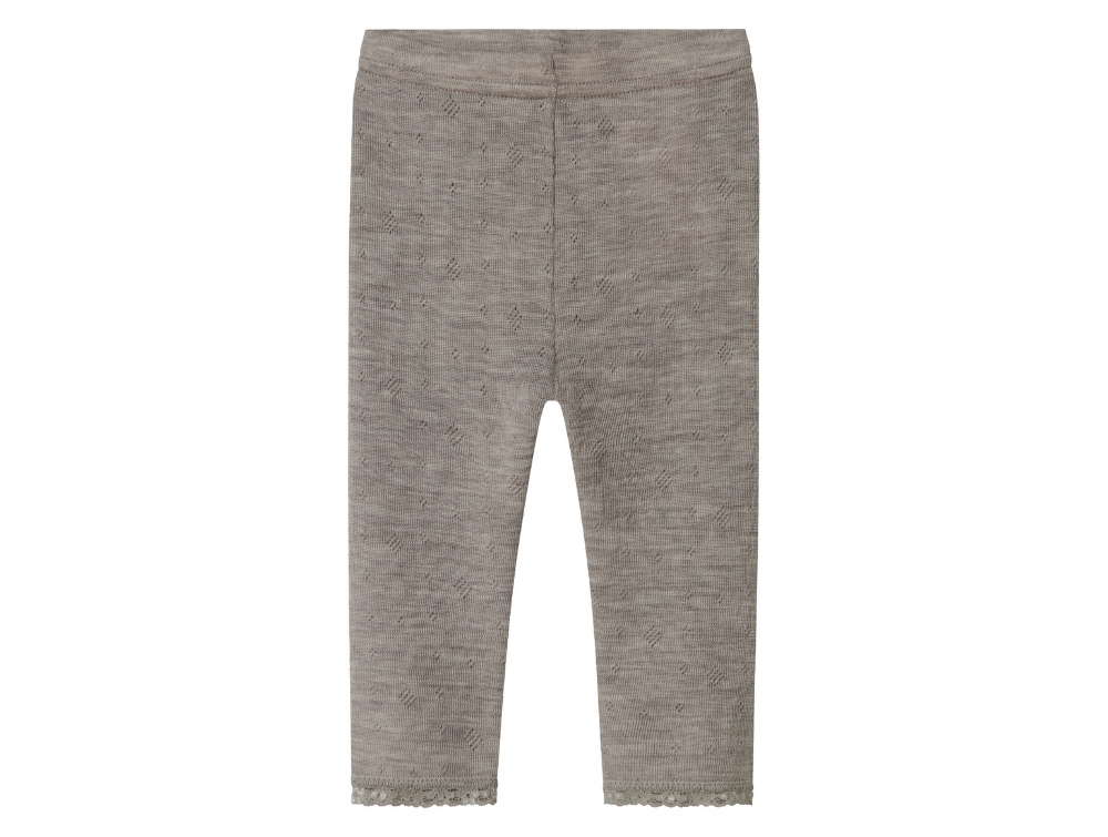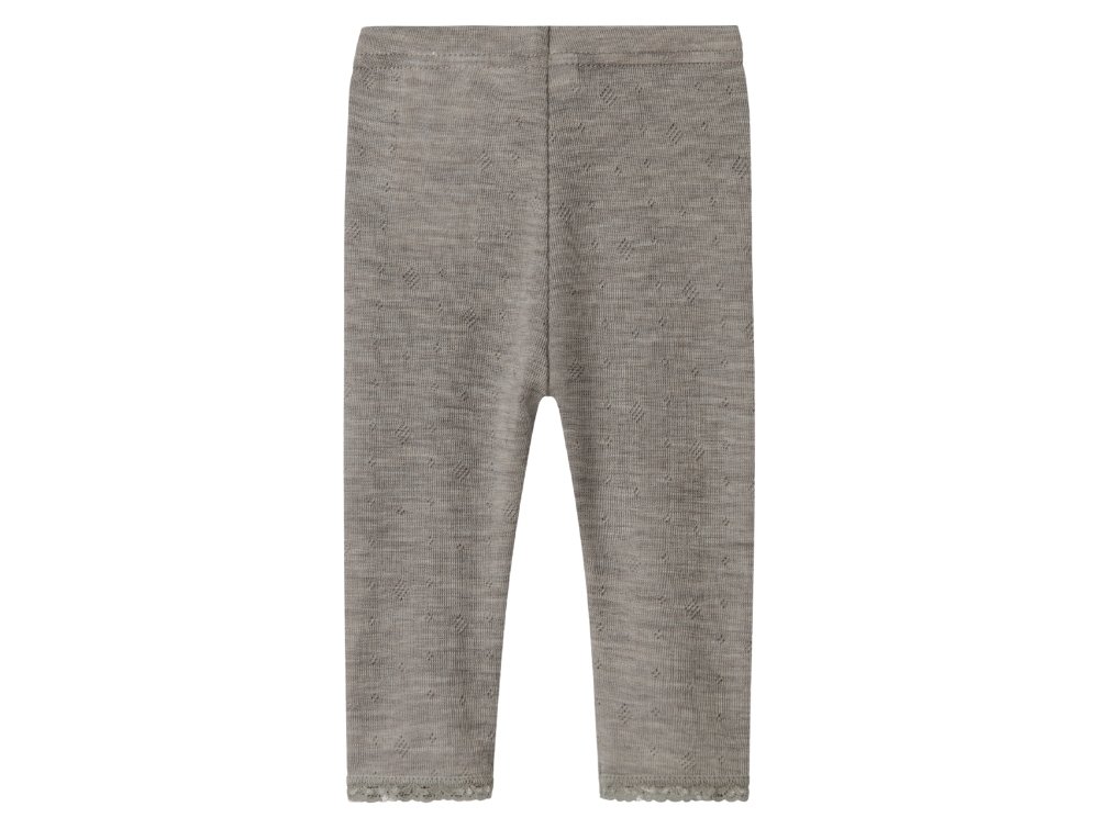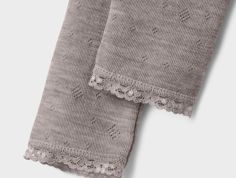 Leggings i grå-brun nuance (satellite) fra Name It i merinould med hulmønster og blondekant.