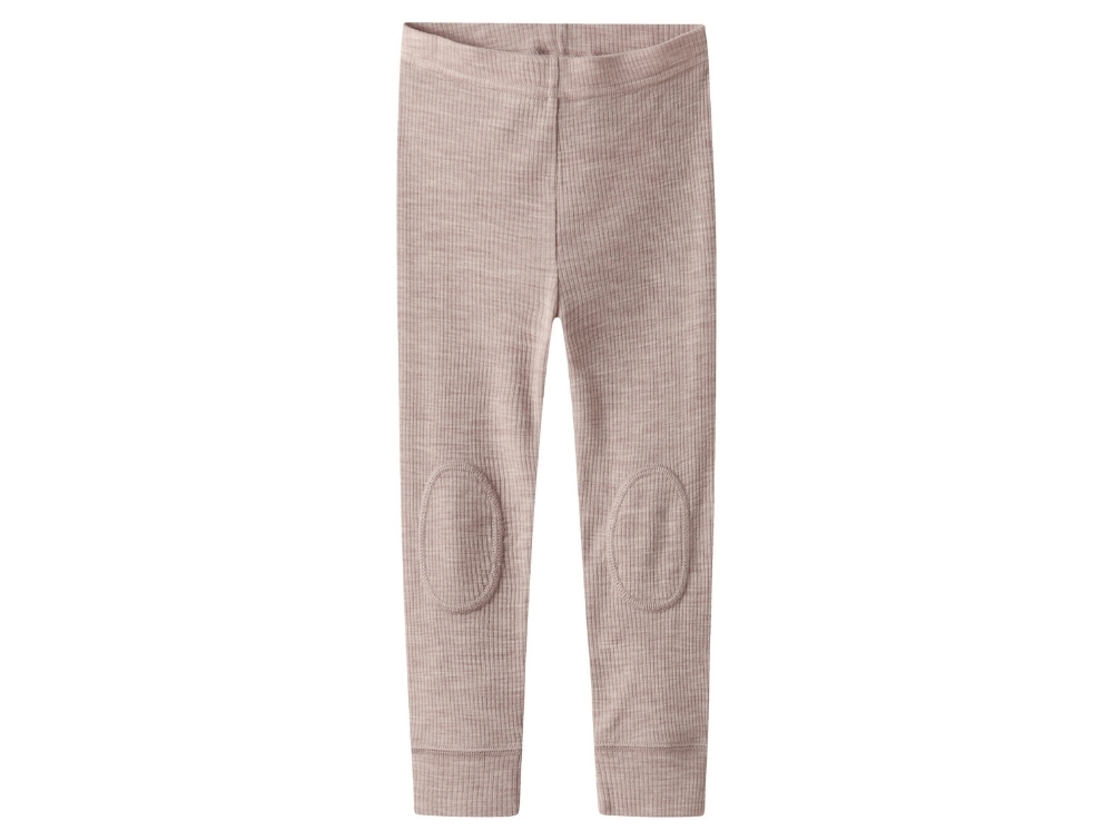 Leggings i støvet rosa nuance (shadow gray) fra Name It i merinould med ribmønster og knæforstærkning.