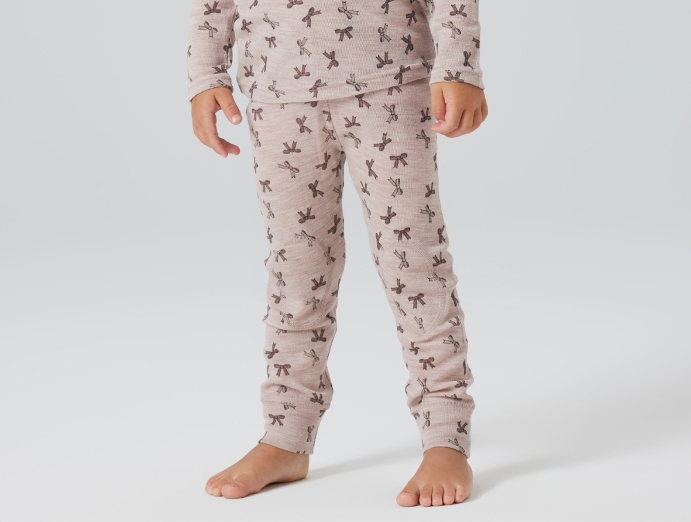 Name It leggings i støvet rosa nuance med sløjfeprint i merinould rib