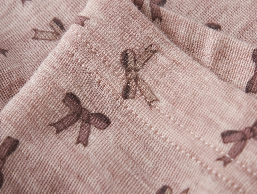 Leggings i støvet rosa nuance (shadow gray) fra Name It i ribstrikket merinould med sløjfeprint.