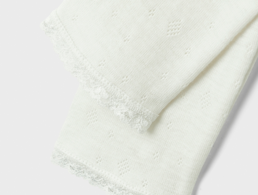 Name It leggings i snow white merinould med hulmønster set forfraName It leggings i snow white merinould med hulmønster detalje af blondekantName It leggings i snow white merinould med hulmønster set bagfra