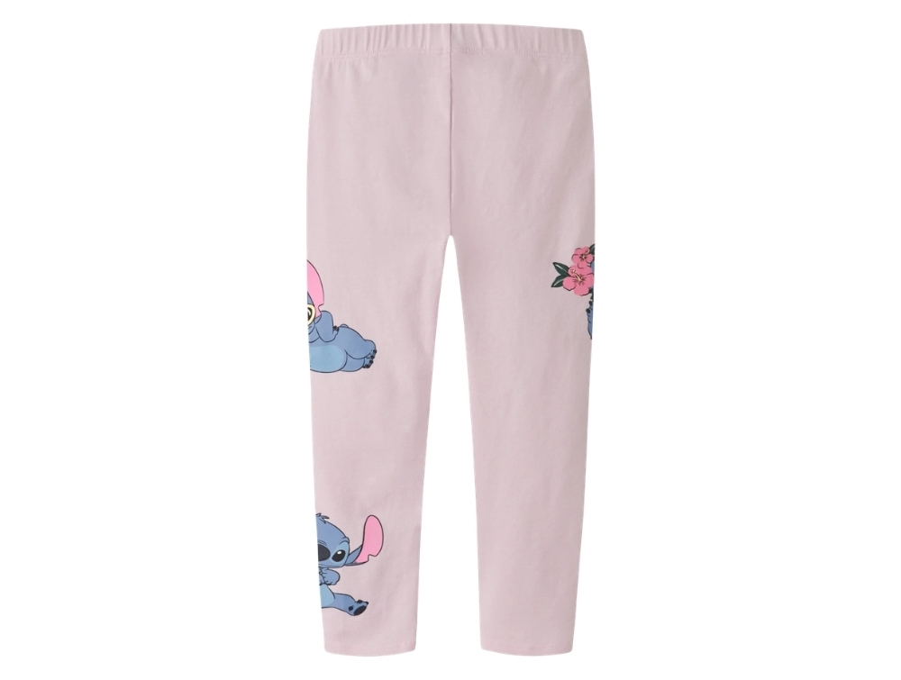 Leggings i lyserød nuance (cradle pink) fra Name It med Stitch print og blomsterdetaljer.