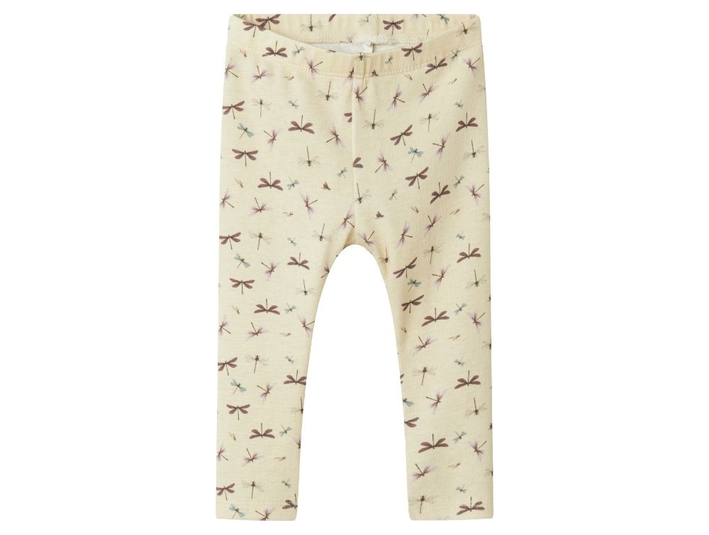 Leggings i lys beige nuance (summer sand) fra Name It med print af små guldsmede over hele stoffet.