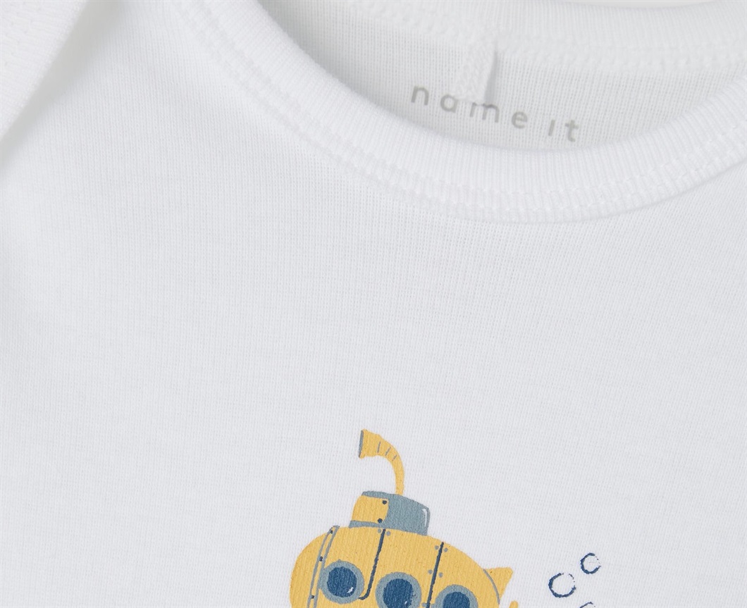 Indeholder ensfarvet blå body, hvid body med ubådsprint på fronten og en hvid body med all-over ubådsprint.