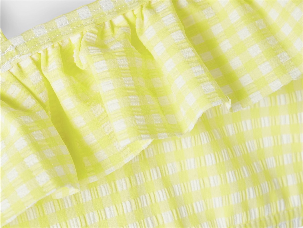 Bikini i farven lemon tonic i tern og one-shoulder med flæse fra Name It.
