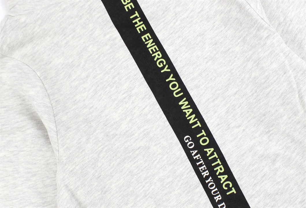 Sweatblusen har et lille tekstprint på front og stort print på ryggen.