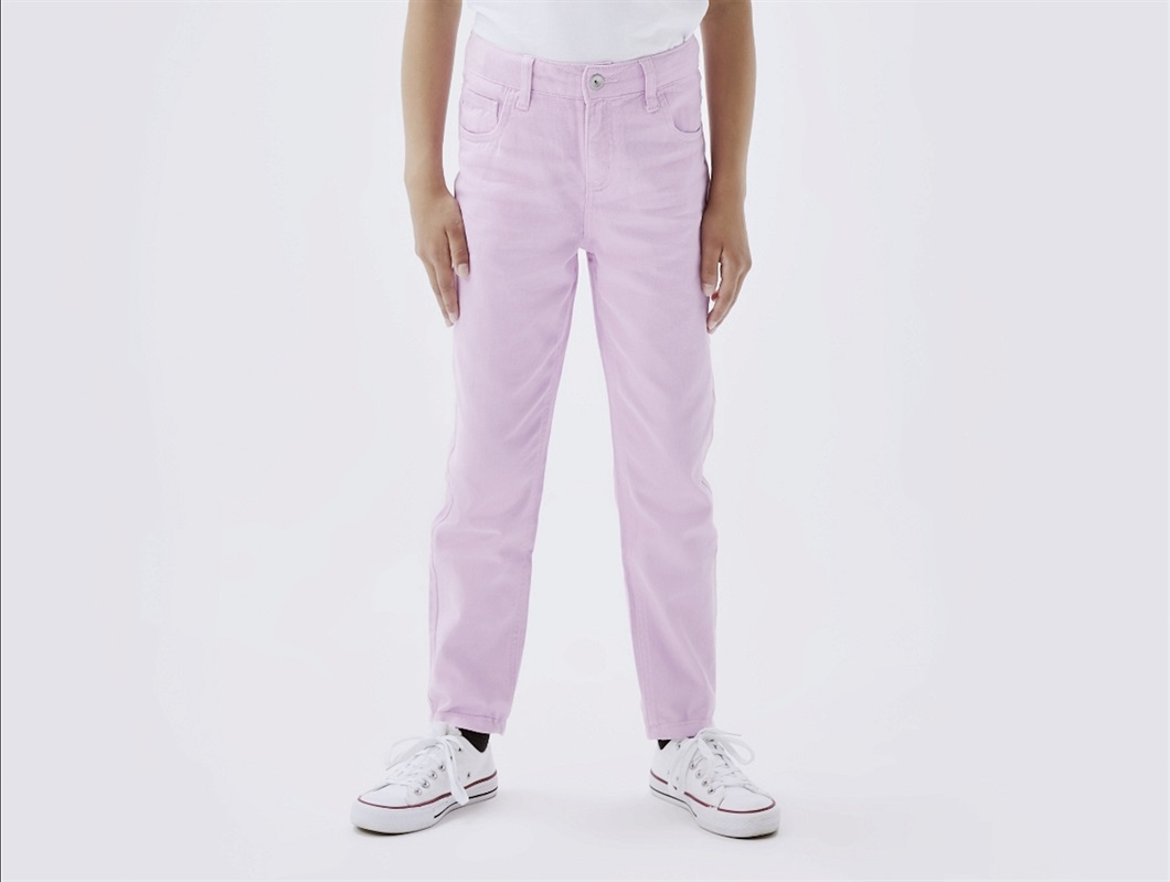 Cool jeans i mom fit i farven lilac sachet fra Name It.