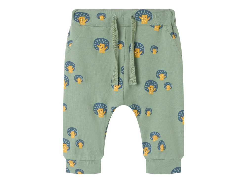 Bløde bukser i farven lily pad med med træprint fra Name It.