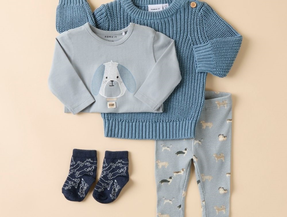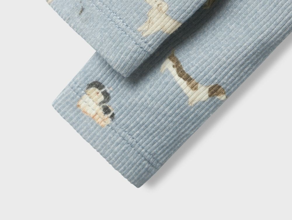 Bløde og strækbare leggings i en fin blå nuance med et sødt print af hunde. Den ribstrikkede kvalitet sikrer god bevægelsesfrihed og en behagelig pasform.