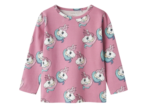 Langærmet top i farven mauve orchid med enhjørningprint fra Name It.
