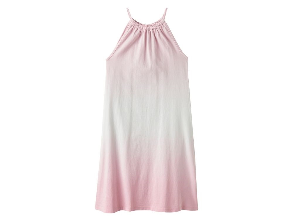 Midi dress i lys rosa og hvide nuancer fra Name It med fint fald og buet kant forneden.