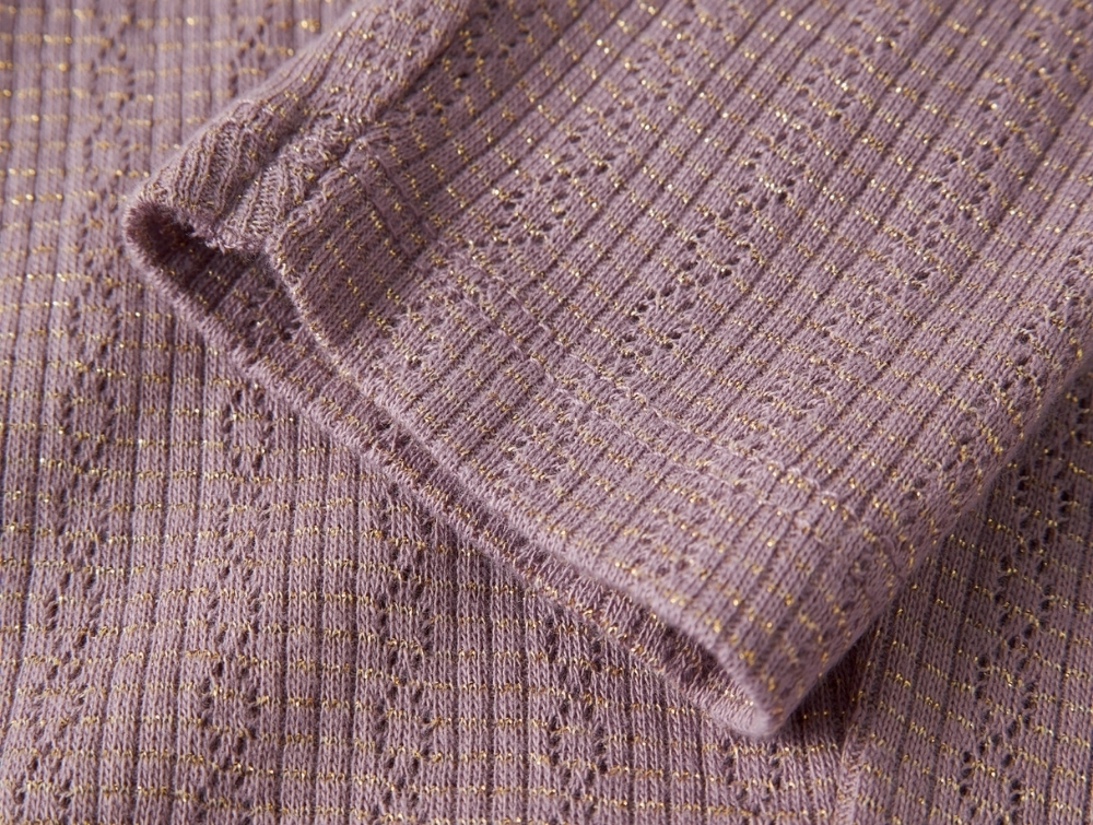 • Ribstrikket materiale med glimmertråde