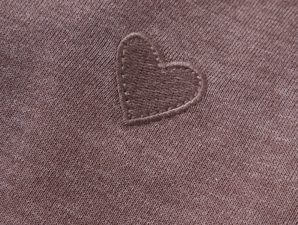 Sweatkjole i lilla nuance (peppercorn) fra Name It MINI med sødt broderet hjerte på brystet. Den bløde, børstede inderside gør kjolen ekstra behagelig at have på og perfekt til både hverdag og weekend.