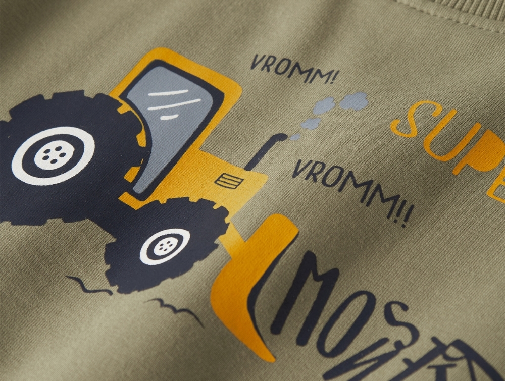 Sweatshirt i støvet grøn nuance (mermaid) fra Name It MINI med sjovt traktorprint på fronten. Lavet i blød, børstet sweatkvalitet, der føles behagelig mod huden og er perfekt til hverdagsbrug.