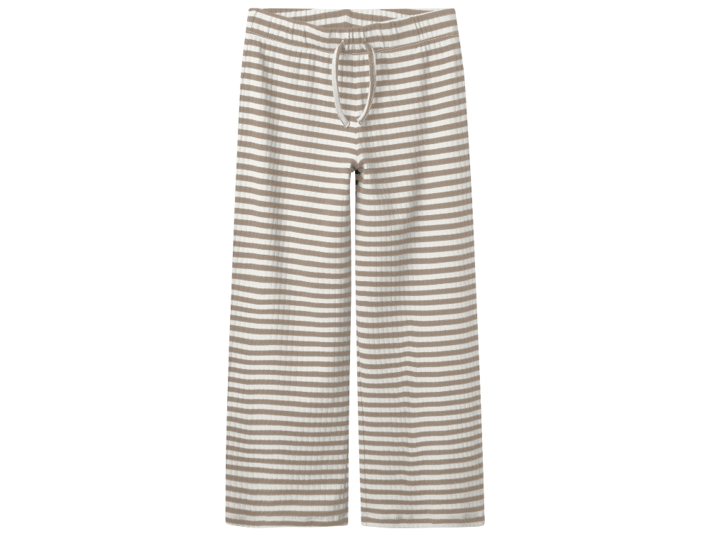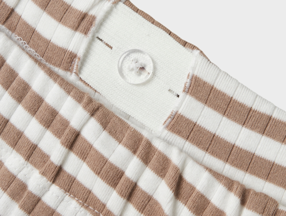 Brede stribede bukser i ribkvalitet i farverne mocha meringue og bright white fra Name It.