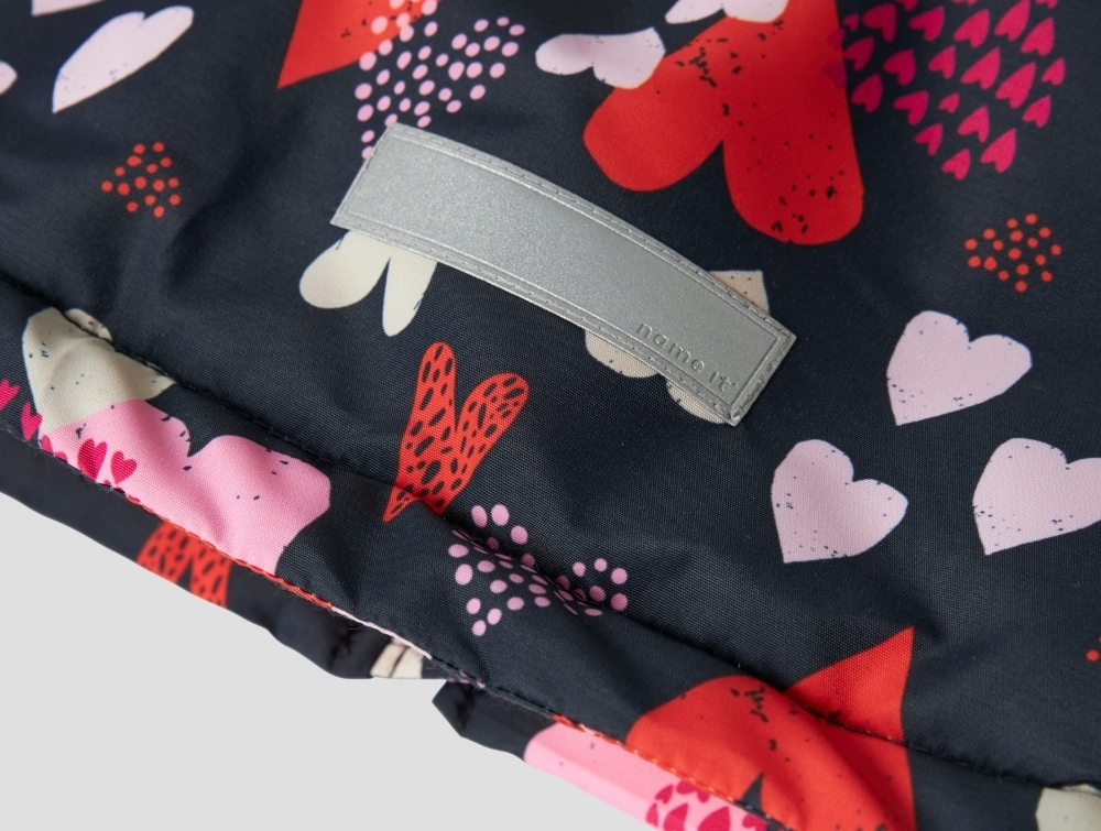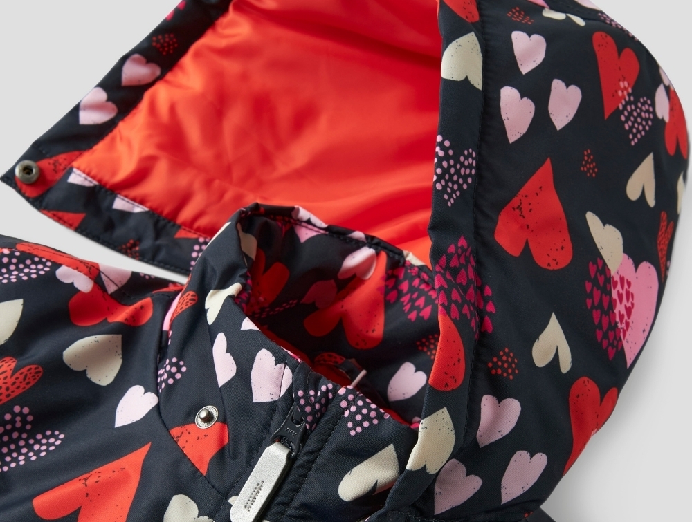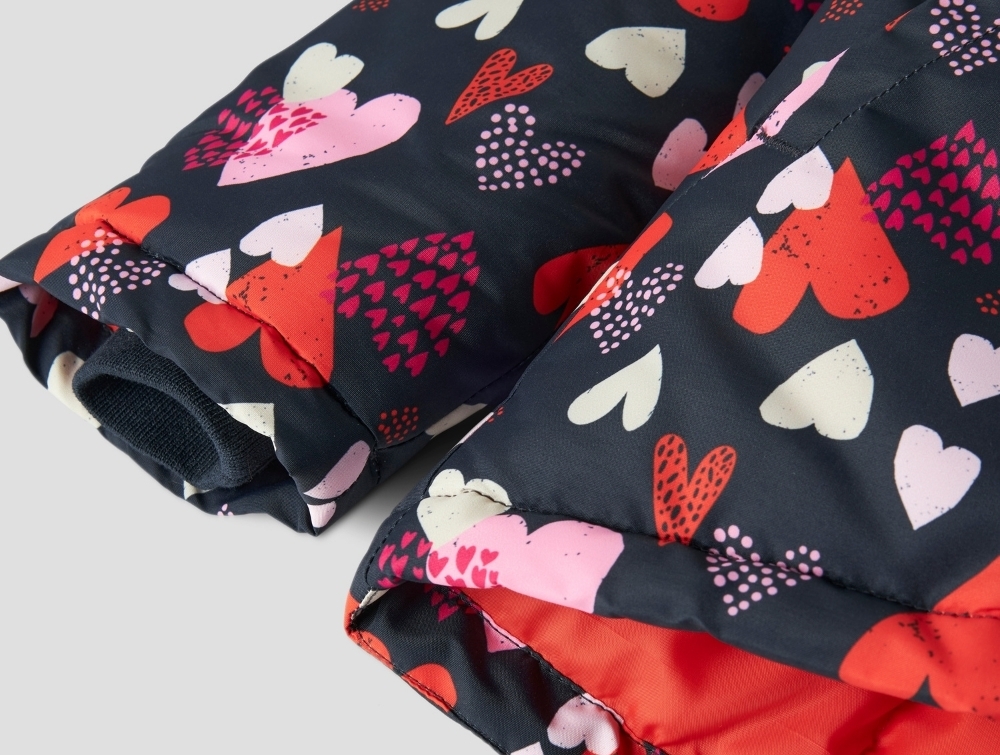 Name It jakke dark sapphire med hjerteprint forfraDetalje af aftagelig hætte på Name It jakke med hjerterRefleksdetalje på mørkeblå hjertejakke fra Name ItÆrmedetalje med ribkant på Name It jakke med hjerterName It jakke dark sapphire med hjerteprint set bagfra