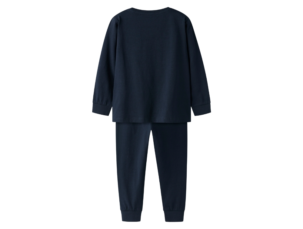 Name It natdragt navy blazer med Spiderman print foranDetalje af Spiderman print på navy natdragt fra Name ItName It natdragt navy blazer med Spiderman print på bukserName It natdragt navy blazer set bagfra