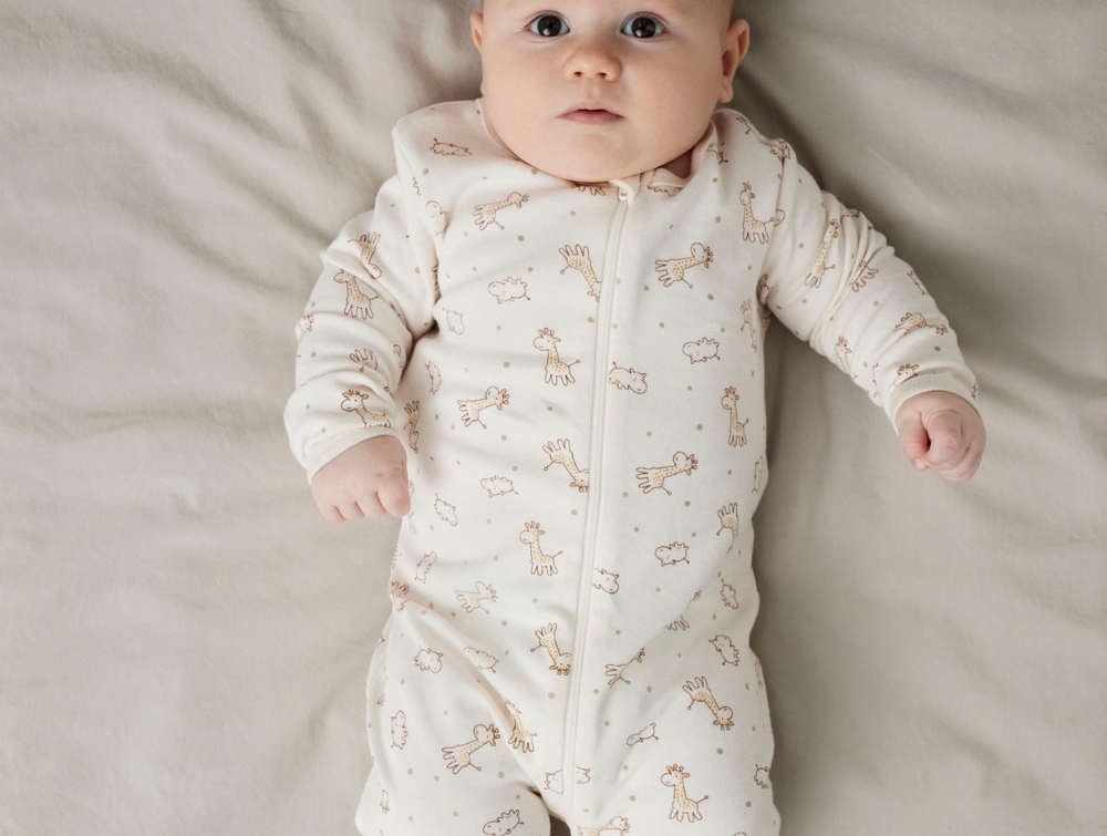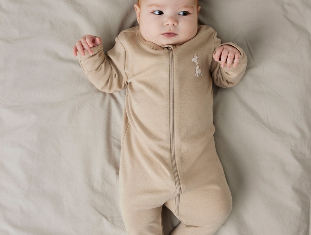 Fremstillet i blød interlockkvalitet af økologisk bomuld, som føles ekstra blød mod barnets hud og giver en smule stræk. Perfekt til nattesøvn og afslapning.