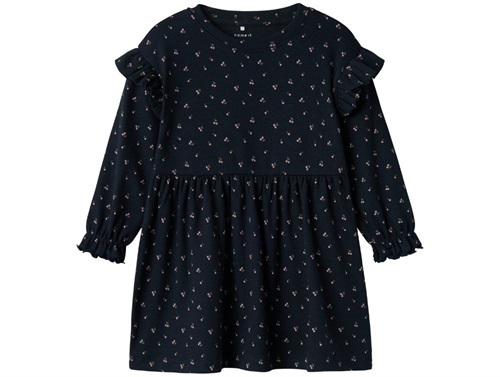 Kjole i farven navy blazer med småt kirsebærprint fra Name It.