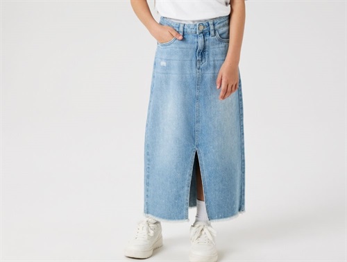 Cool lang cowboynederdel i farven light blue denim fra Name It.