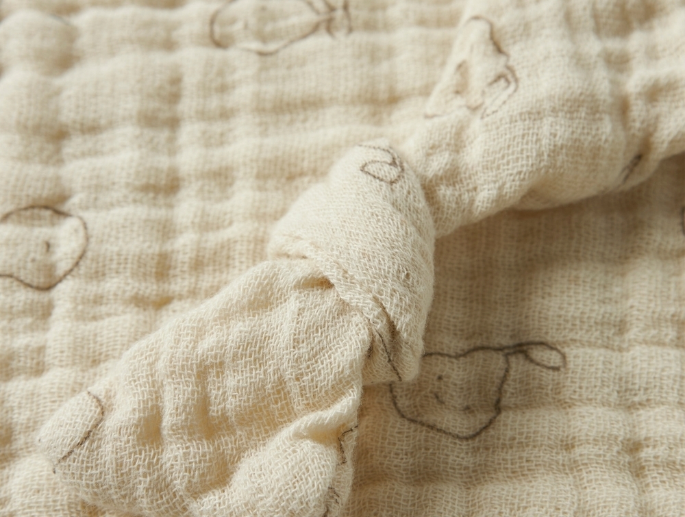Den lette, vævede kvalitet har en blød og let struktureret overflade, som føles behagelig mod barnets hud.