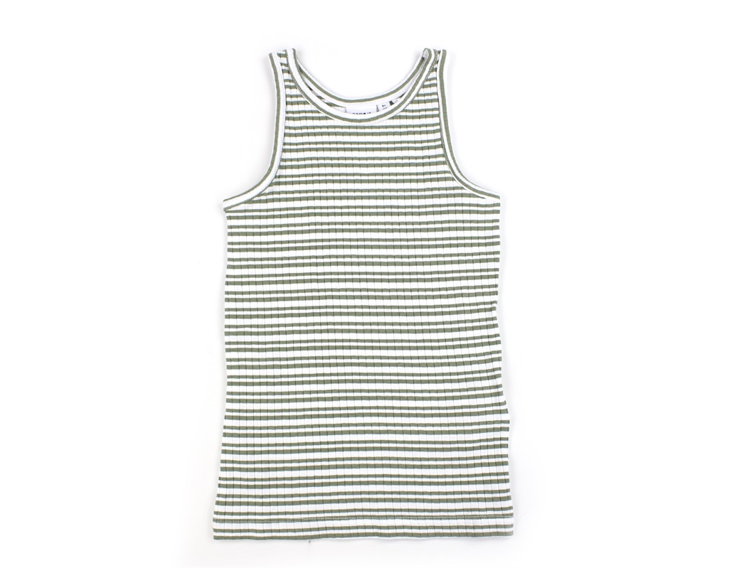Stribet tanktop i farverne bright white og oil green fra Name It.
