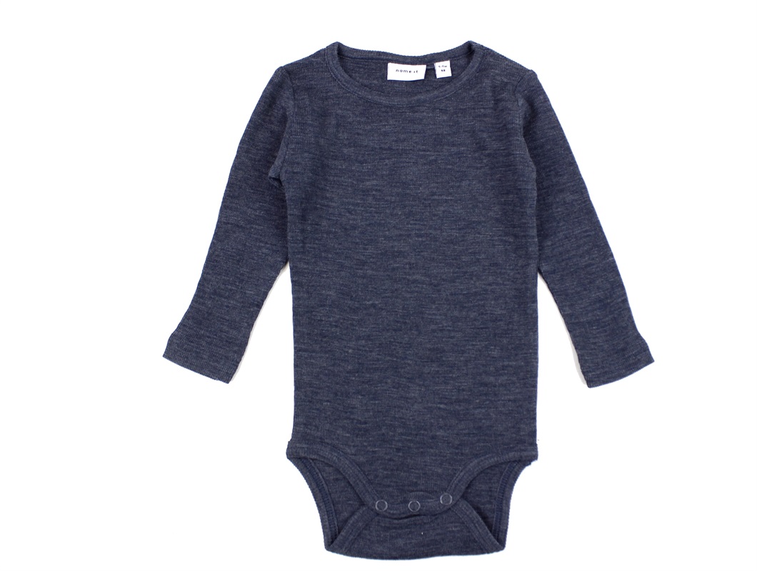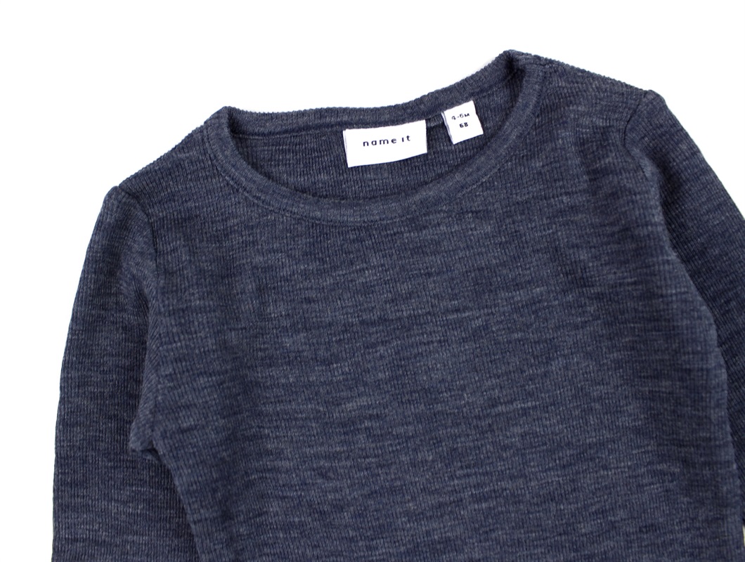 Body i blød merinould (85%) og silke (15%) i farven ombre blue fra Name It.