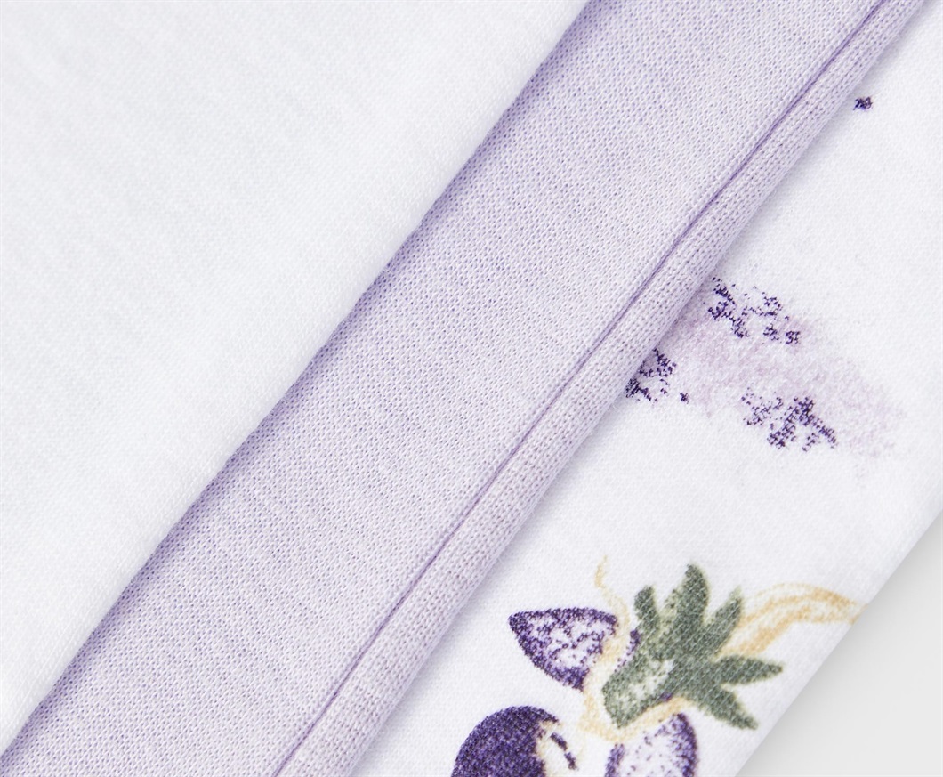 Den lilla body er ensfarvet mens de to hvide bodyer har prints af fe'er.