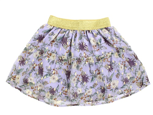 Nederdel i farven orchid petal med blomsterprint og guldfarvet glitter fra Name It.