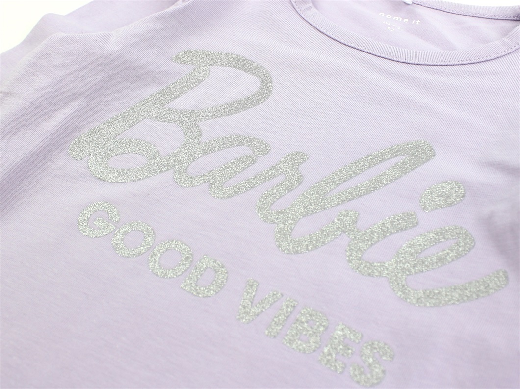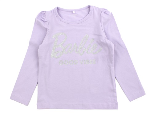 Langærmet t-shirt i farven orchid petal med glimmer Barbie-print fra Name It.